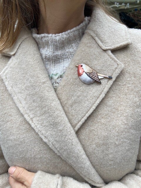 Dit schattige roodborstje uit Frankrijk is een symbool van hoop en liefde. En omdat ze magnetsch is, laat ze geen gaatjes achter in je kleding!